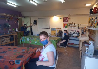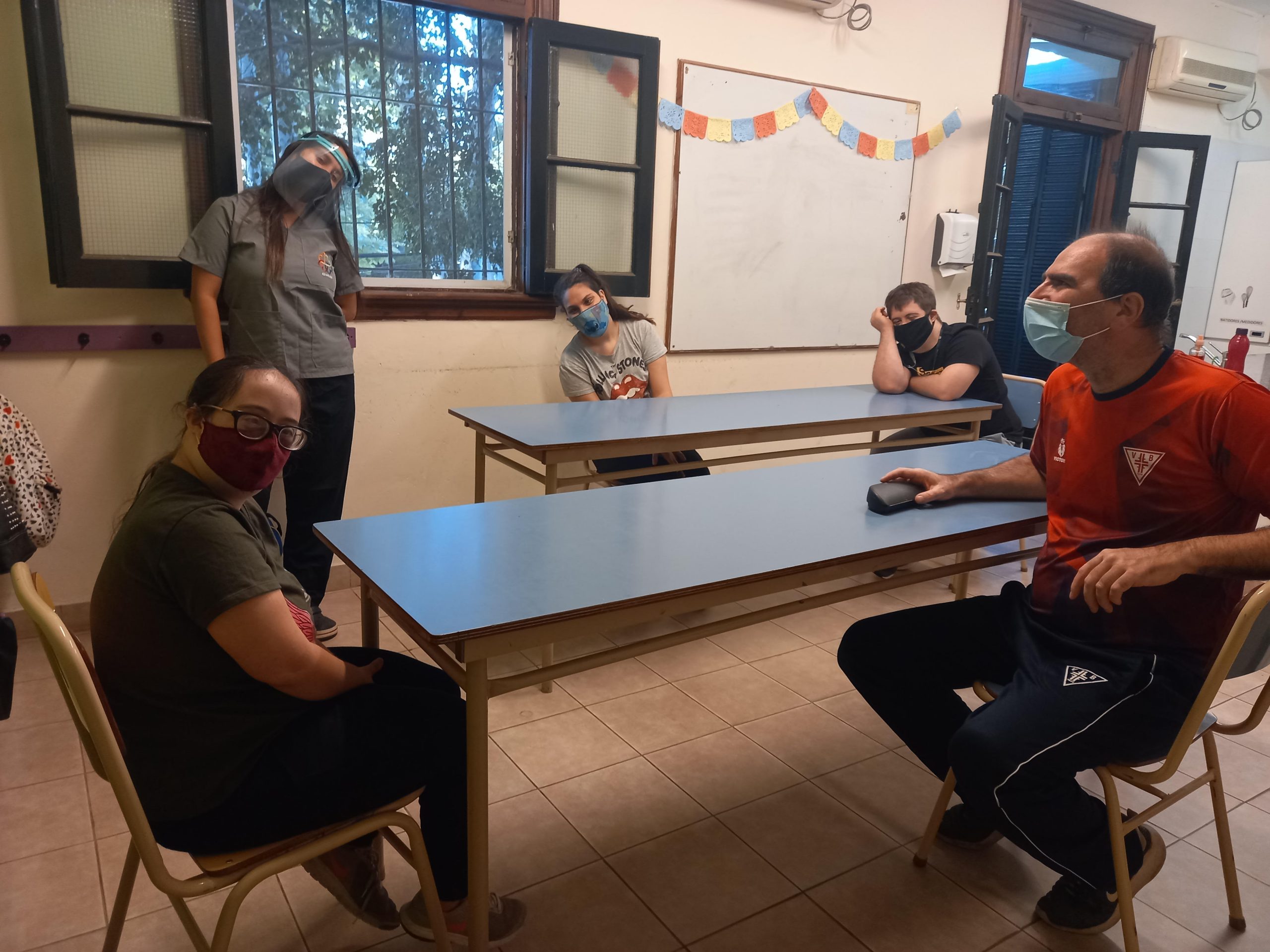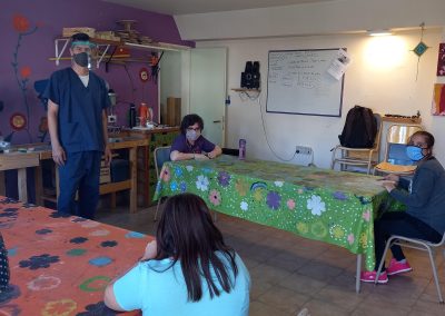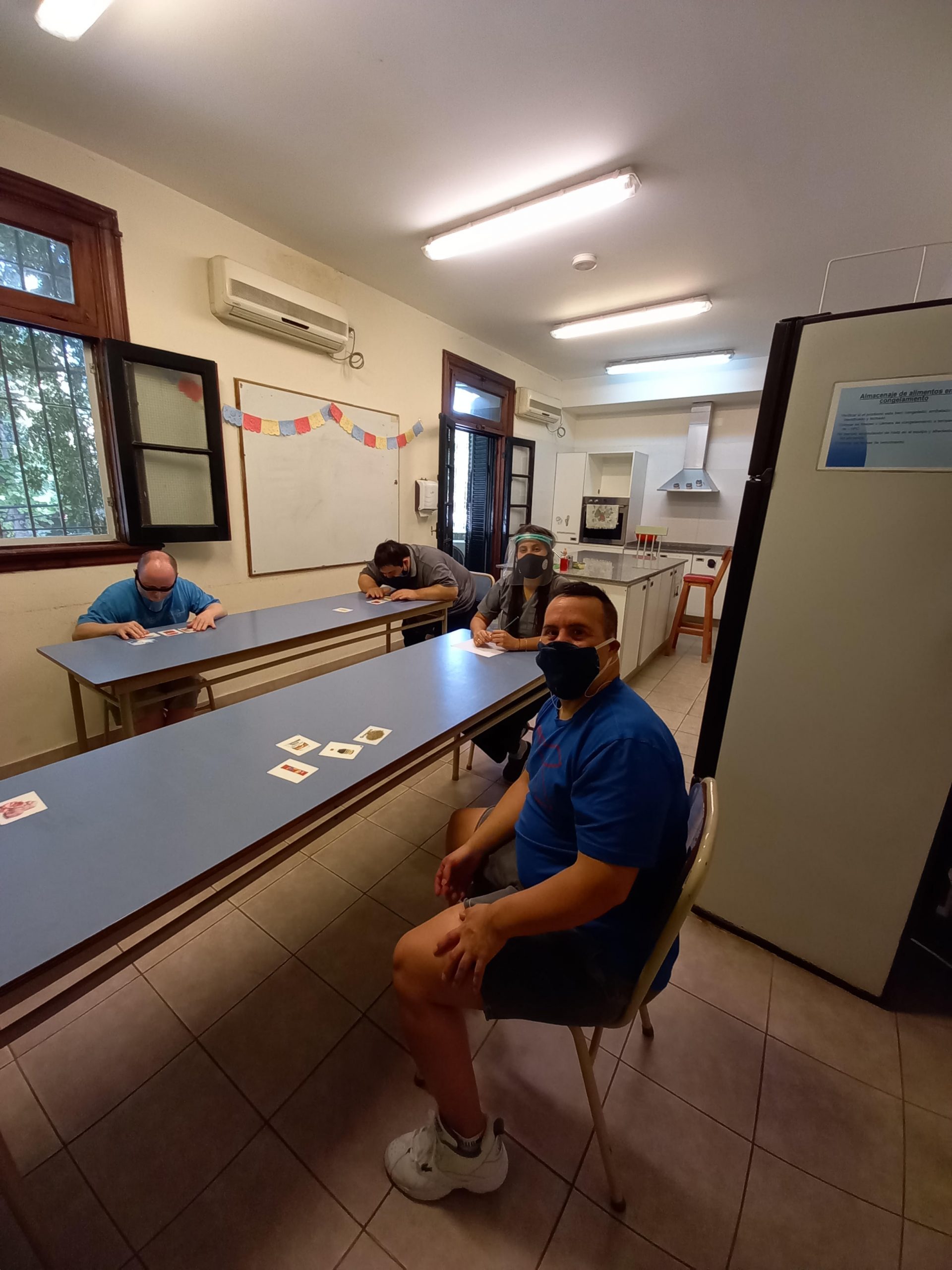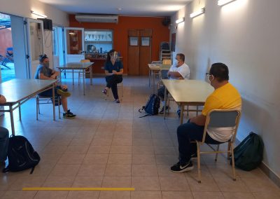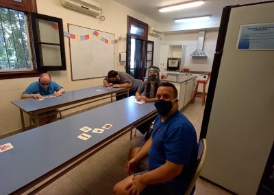 Llenos de alegría por el reencuentro en nuestra sede, comenzamos con algunas actividades de estimulación cognitiva, recordando procesos de trabajo y rutinas y, por supuesto, conversamos sobre el protocolo: cómo cuidarnos entre todos y qué hacer para que esta nueva etapa sea posible.